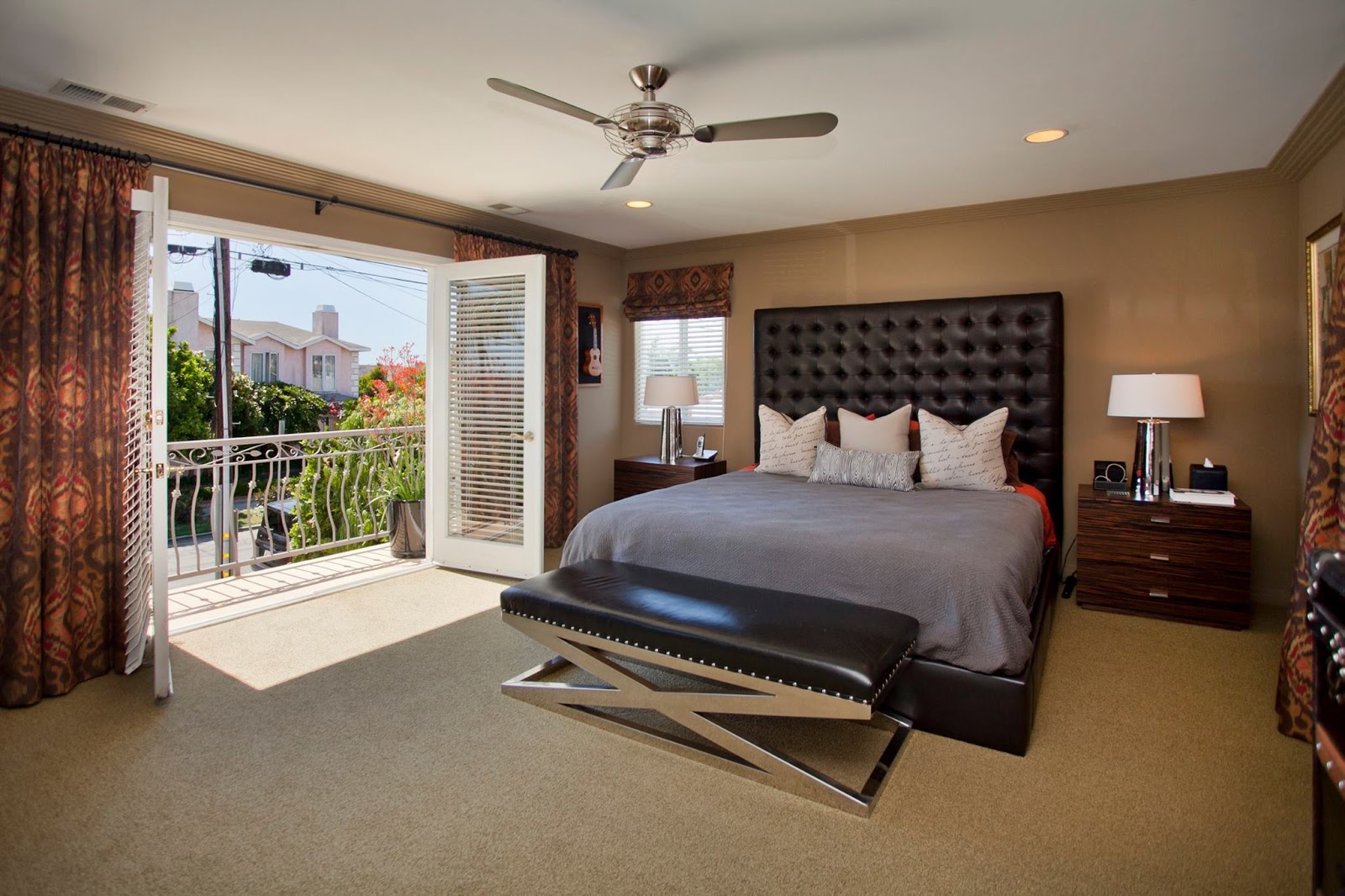 Nancy: The room is actually not finished in these photos. We are currently re-upholstering a chair for the other side of the room. The new headboard is still coming in also. The rattan furniture was moved to the other side of the room and we picked a campaign style for the new pieces with brass accents that work with it.
